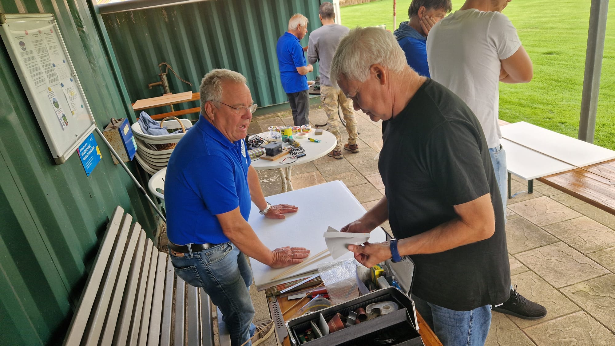 (02.08.2025) Um etwas Abwechslung in den Flugalltag zu bringen, hat sich unser Club etwas Besonderes ausgedacht. Mit einer Zeitvorgabe von 120 Minuten sollten Zweierteams aus einer Depronplatte und Kiefernleisten einen mit Brushlessmotor betriebenen Flieger bauen. Sieger wird das Team, das als erstes ein Flug von mindestens 30 Sekunden vorweisen kann. Es traten folgende Teams an:"Lilienthal" mit Andreas H. und Sven